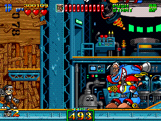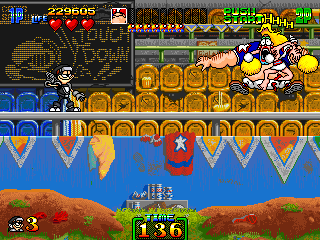 Not content with running away once, Mac makes you chase him like a bitch again and by this point, you just want the fight to be over. After slooooowly scrolling through the slog that is the last segment of this stage, Mac just sort-of floats there, occasionally using his machine gun, while packs of enemies try and catch you out. Fortunately, his arm isn't working here, so you can just abuse the short-range attack and take this guy out really quickly. I know I'm ragging on this part of the game a little, but it really ruins the sense of fluidity the game's had up to this point.