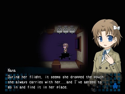 In its favour, however, there's two things that did not make the leap over to the PSP port. The most significant- and it's utterly bizarre that this was left out- is a skip text function. As well as fast-forwarding past text boxes (either read text only or all text), it speeds up room transitions and any character movement, so this makes replaying the game to get the remaining Wrong Endings a lot, lot easier. The most significant bit of content missing from the PSP port is Extra Chapter 4: Tooth... Which may sound familiar to Corpse Party veterans, as it's actually a chapter from Book of Shadows. Unlocked by getting Wrong End #3 in Chapter 4, Tooth is indeed a version of the same chapter from Book of Shadows- this served as a 'preview' of that game of sorts- but played in the style of the original Corpse Party, where you'll mostly be taking control of Tohko. While not a very long chapter, this is still worth playing even if you've completed Book of Shadows (and even if it actually reuses the translation from that game) as it adds a few more details to that story, and surprisingly feels the most 'video game-y' of the chapters in the game, incorporating traps on the floor (blood spots that launch arrows at your party and injure them) and keeping your HP in check (in this case, using candles to heal yourself). Oddly, this one small segment serves almost as a preview of some of the mechanics introduced in Corpse Party: Blood Drive several years later!