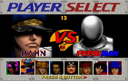 To Unlock: In Arcade Mode, against any opponent, leave the controller alone. Before the match ends, Pepsiman will challenge you. Beat him!