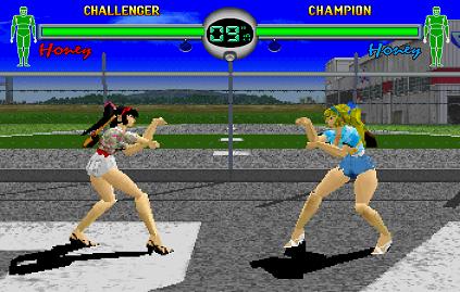 Ahaha, oh dear. The final secret that's exclusive to the Japanese version is extremely dicey, but at least it's easy to do- in the arcade version of Fighting Vipers, you have to win 100 matches in a row as Honey to see this trick in action. If the average game is 50p, it would cost you £52 to see it, at least an hour of your precious time lost, and of course, the required sacrifice of your dignity. This is the Saturn version though, so once you beat the game on Very Hard as Honey, go into any game mode and destroy her lower armour.
