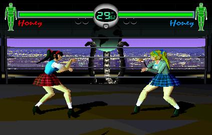 Again, Schoolgirl Honey gets a separate space on the Character Select screen, and she can't be used in Arcade Mode either. Even though she gains no additional moves like Hawaii Honey, you still can't see her moves list in Training Mode. As such, Schoolgirl Honey is possibly the most pointless character in the game, probably only included to adhere to the strict regulations regarding fighting games in Japan, i.e. there must be at least one character wearing a schoolgirl costume at some point.