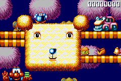 However, in 2004, over 10 years later, Robocod made a dramatic return to the video game scene, with a pseudo-remake released for the Playstation, and a year later, ports to the Game Boy Advance, Nintendo DS and PS2- the screenshots here are from the GBA version. Why Robocod, of all games, was chosen to be brought back from the dead is something that still confuses me to this day, but hey, introducing it to a new audience is OK with me... Although perhaps not quite like this. Why would I say that? Surely I'd support such a re-release? Maybe it's because, aside from (possibly) the DS version, all these 'ports' are absolutely horrible.