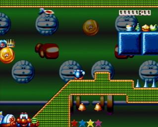 Actually, I did find the soundtrack to Robocod elsewhere on the 'net, but the link was dead. Deeming this as unacceptable, I decided to rip it myself... This was actually pretty easy, as there's only 7 songs in the entire game, along with 3 little jingles. Almost all of the songs share a similarity with the theme from Bubble Bobble, in that you can listen to them for hours and not go insane, despite what common sense would tell you. Best of all, the music that plays halfway through the intro is 'Ode to Robocod'... A very cheeky parody of the theme from Robocop!