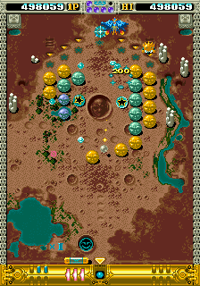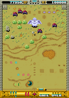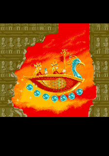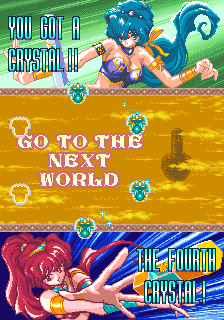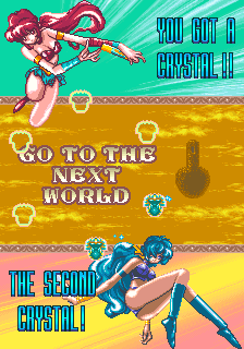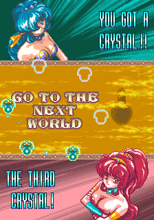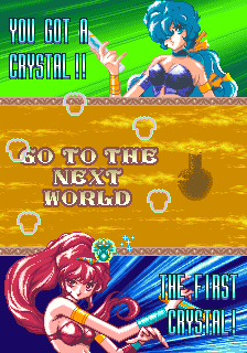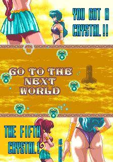 The thing that'll stand out the most about OOParts is definitely its presentation though, this game is gorgeous! The Sega C2 board has, as pointed out by friend of the site kak2X and explained on Sega Retro, more available colours it can produce, and OOParts really seems to flaunt this hardware with its incredible presentation. It reminds me a little of Raiden of all things with very small but finely-detailed and colour-rich sprites, and there aren't many Breakout-style games with the fantasy theme of this one so it really stands out and certainly made an impression on me when I first saw it. The music is also excellent throughout, with multiple themes per world composed by Shigeharu Isoda under the pseudonym Kazumi Nasu (although OOParts isn't listed on his Video Game Music Preservation Foundation page, another arcade game by Success, RyuKyu, and this is when he was freelancing so it lines up) and they have this strange, mystic vibe to them befitting the game's theme making it feel all the more mysterious. The character design by Hideki Tamura only really show up in the between-area cutscenes (which we'll show off in full in Extended Play, they're good) so they're not as ever-present as the Cotton characters but the pixel art here is excellent, again really fitting with the otherworldly vibe of the game, something accentuated by the strange ending and stark Game Over scene. It looks and sounds great, is what I'm saying in too many words, with the one low point being that, for how long the boss fights can sometimes be, the boss theme isn't quite long enough.