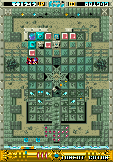 The only other thing to mention in terms of stage design is that there's not a whole lot of 'gimmicks' on these stages outside of the bosses which you can see as a good or a bad thing. It's good that it doesn't go for anything silly or annoying like the plunger in Block Gal that sends your ball straight back down the field or something like that, although there are spinners that send your ball off-track and general obstacles that just get in the way, so it's not like the game doesn't have any spice in that regard. However, some of the second stages in each area do have blocks that eventually regenerate over time that can be a little bothersome to deal with, but they take quite a long time to do so, giving you plenty of room to work with for the most part. Some might see this as a bad thing as it can be a bit too simple, but I think this gives the game a direct appeal that's not too simple, you get to break some visually-interesting blocks for a credit or two with some little boss battles thrown in for good measure, so I think it does enough to maintain your interest.