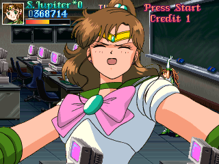 ...Don't look at me like that. My research is important stuff; just making sure what I'm babbling about isn't totally redundant. And it's not, in this case, as not many people talk about Pretty Soldier Sailor Moon... The arcade game, that is. According to that website, the SNES games are far more popular, or something. For some reason, the first SNES game was also released in France... Back then, this was actually pretty common, a few games based on Dragonball were also translated into French. Why? Who knows?