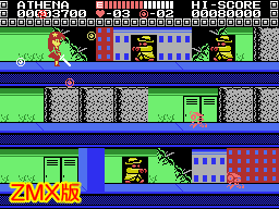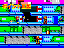 Finally, the Amstrad CPC version certainly looks like it's the best- it's a much brighter version of the C64 game, and it's got a much snazzier title screen. Unfortunately, looks aren't everything, and the Amstrad version is, by far, the worst version of the game. It's nearly unplayable. In fact, it makes the NES Athena look like a masterpiece in comparison. The automatic scrolling from the arcade game is completely gone, replaced by awkward flick-screen action, it's monstrously slow, the enemies will kill you even quicker than in the arcade version, and it's just an absolute mess. I'm amazed that this was even released, but then again, this was the late '80s home computer market in England, and so anything goes. SQIJ! was released, for instance. Ahem.