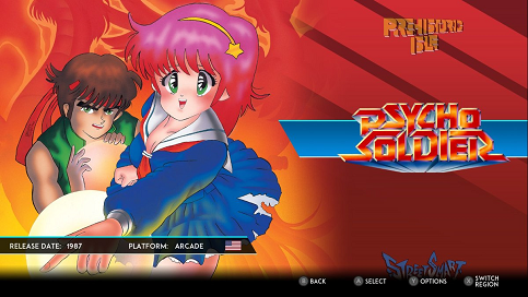 Not much to say here, as we covered this collection quite extensively over here but with regards to Psycho Soldier specifically, this version does indeed have both the US and Japanese versions, meaning you can hear both versions of the Psycho Soldier theme here. The emulation is better than in SNK Arcade Classics 0, you can rewind and make a single save state, and the Museum has a ton of rare Psycho Soldier artwork and useful bits of trivia. Did you know Sie Kensou's name is supposed to read as the word 'sequence'? Now you do! If you want to play the game at home legally, this is absolutely the way to go, although those who want an arcade stick should either get the PS4 version or get a controller convertor for the Switch. In either case, this is a much better option to play Psycho Soldier at home.