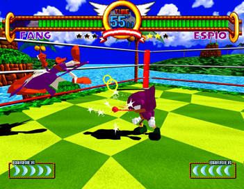 | ![]() From: Knuckles' Chaotix (1995) Full Name: Espio the Chameleon Speciality: Tongue Attack Home Stage: Mushroom Hill Knuckles in the Neutrogic High Zone incident, he fights alone this time around. |