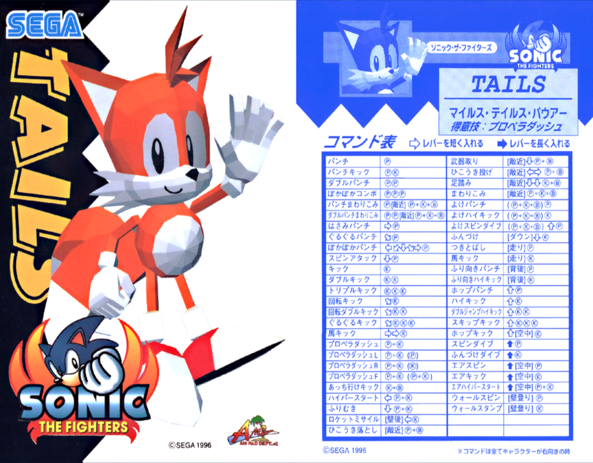 | ![]() From: Sonic the Hedgehog 2 (1992) Full Name: Miles "Tails" Prower Speciality: Propeller Dash Home Stage: Canyon Cruise he's a smart kid who created the Lunar Fox and can use his tails to fly.