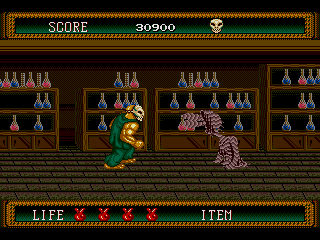 This form is a right little sod. It's fast, small, hard to hit, and likes to jump around a lot. So, basically, it's an enemy that Rick couldn't possibly be more ill-equipped to fight. Even better, if you successfully get some distance between you and the Thing, it'll stand still until you get close, and if you attack it, it'll most likely jump over you then ram you from behind. This is one where I just threw my hands in the air and basically gave up. By 'gave up' I mean 'looked up strategies on YouTube'. This Game Master runthrough of the game shows that you can corner the beast, but while this video makes it look pretty easy to pull off, that's not really the case. Good luck with this one, punk!