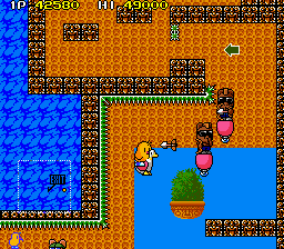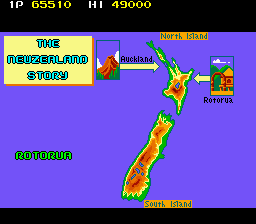 The kid gloves haven't been taken off just yet, but Rotorua- in reality a city 140 miles away from Auckland, situated by the Lakes of Rotorua where the city gets its name and famous for natural geysers- is still a step up, with many new enemies showing up that will dog you for the rest of rhe game. There's also a lot more environmental hazards to deal with, including an uptick in the number of spikes, larger water areas to swim through, and in 2-1 and 2-4, cannons that would love nothing more than to lodge a big ol' bullet in Tiki's head. However, a bit like Worlds 2, 3, 5, 6 and 7 in Super Mario Bros., Rotorua is a 'flyover world' of sorts, as using Warps will skip over most of it. Still, we'd better cover it, hadn't we?