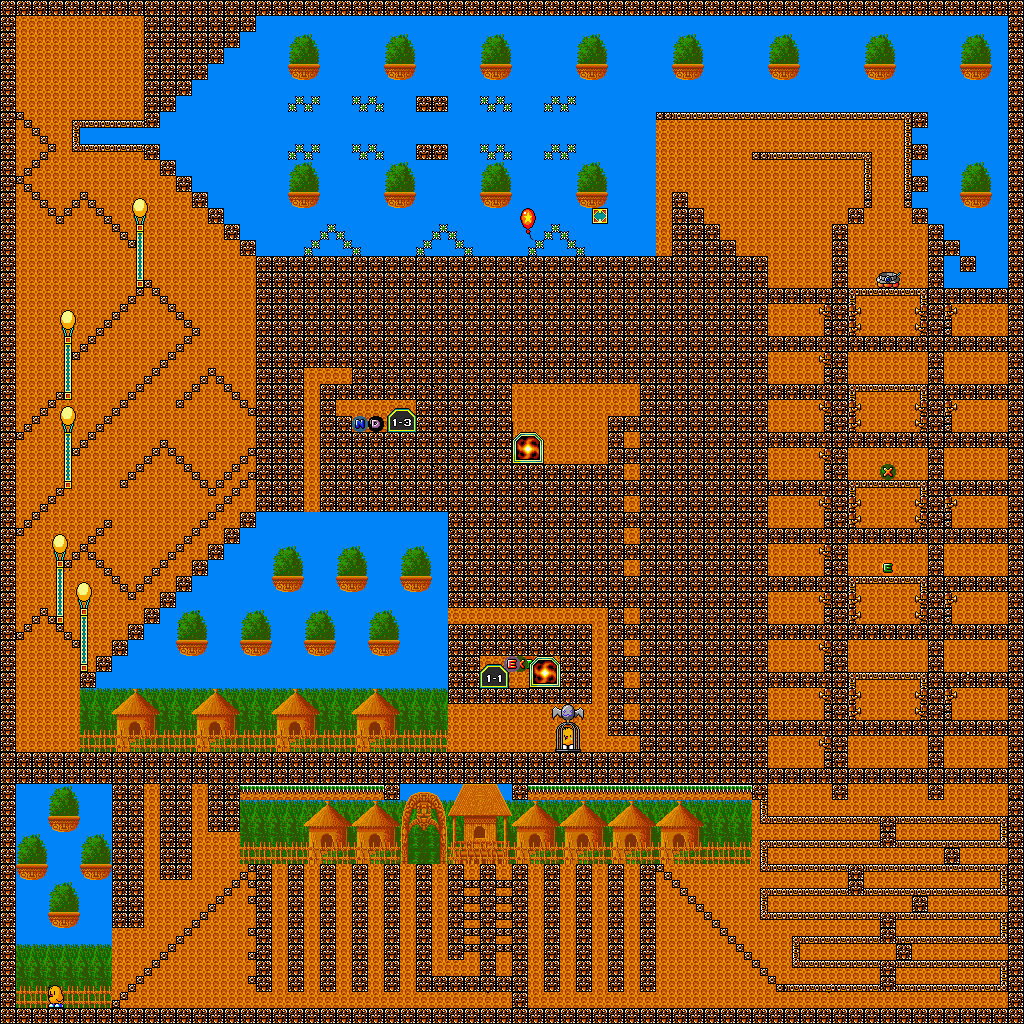 Aside from all these new enemies appearing, this is actually a bit of a break compared to the rounds you've been doing up to this point. It's fairly straightforward, although there's a few odd points here and there. After the initial mazey section, the open area in the bottom-right has a Mr. Wakelin lurking at the bottom, and the spike on the roof as you go upwards means you're forced to abandon your vehicle to get past. The other notable part here is the large body of water you've got to get past, the largest you've encountered so far. It's tempting to duck down and grab the T, but you'll have to go up and around to get it- try to approach it from the left, and you'll get eaten by the Sea Claw (another new enemy, technically! Unless you saw it in Round 1-4's secret area) as it only activates its maw when you're close to it. A horrid fate indeed. The cage is at the end of this section, so you've got a pretty easy time of it, all things considered. See, this is why we fly over these rounds via the warp.