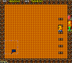 However, this warp warrants a bit more explanation, as it can be exploited due to a bit of an oversight on Taito's part. The intent was to not allow the player to reach the Warp from beyond the Round 1-1 Warp, as you can't get inside the box from outside, and you can't normally make the Warp appear with your Arrows. However, if you have a Laser and a Duck, you can go shoot through the wall and spawn the Warp, or if you just have a Fire Cane, you can stand under the box and fire repeatedly to spawn the Warp. However you do it, you can then jump from below and hit the Warp, taking you back to Round 1-4. From there, you can go back to fight the Frozen Whale, go back to 2-1, and essentially loop the game forever. There's also a few spots- underneath Round 1-4, the first area of 2-1 with Mr. Wakelin, and before the cage in 2-1 with the Germs- where you can farm enemies to make sure the item cycle is right to give you the weapon you need to make the Warp appear. It's difficult to do, but if you really want, you can loop the game forever!