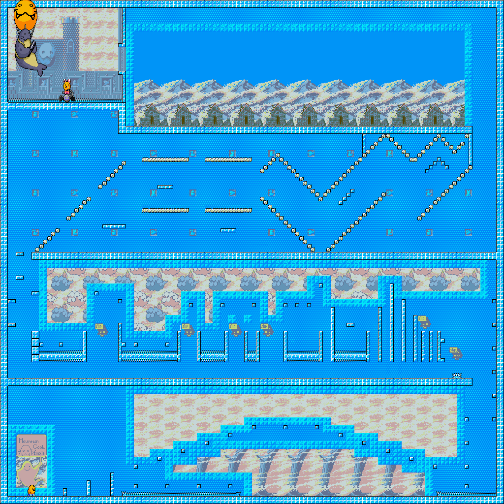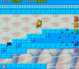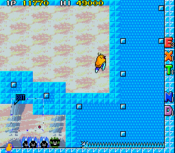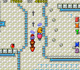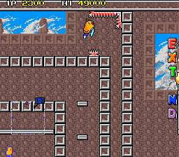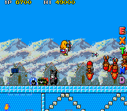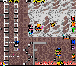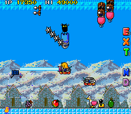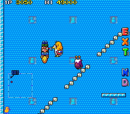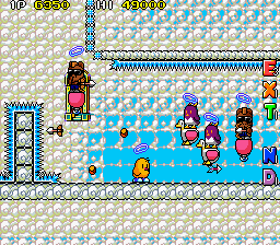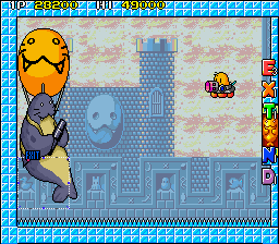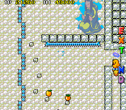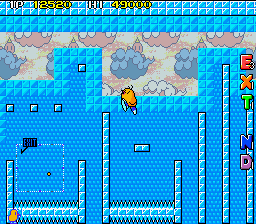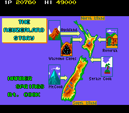 Up to this point, The NewZealand Story hasn't had any fire or ice levels, so the final world smashes them together, with the first two being set in Hanmer Springs- in the real world a small town on the South Island famous for its hot springs that has less than 1000 residents- and the final two being set in Mt. Cook- the highest mountain in New Zealand, part of the Southern Alps and is generally regarded as being pretty lethal for would-be climbers. Hot and cold, together at last! These present your fiercest challenge, with the final two rounds in particular being nasty- they have no checkpoints. You're so close to finishing your journey though, so don't give up now!