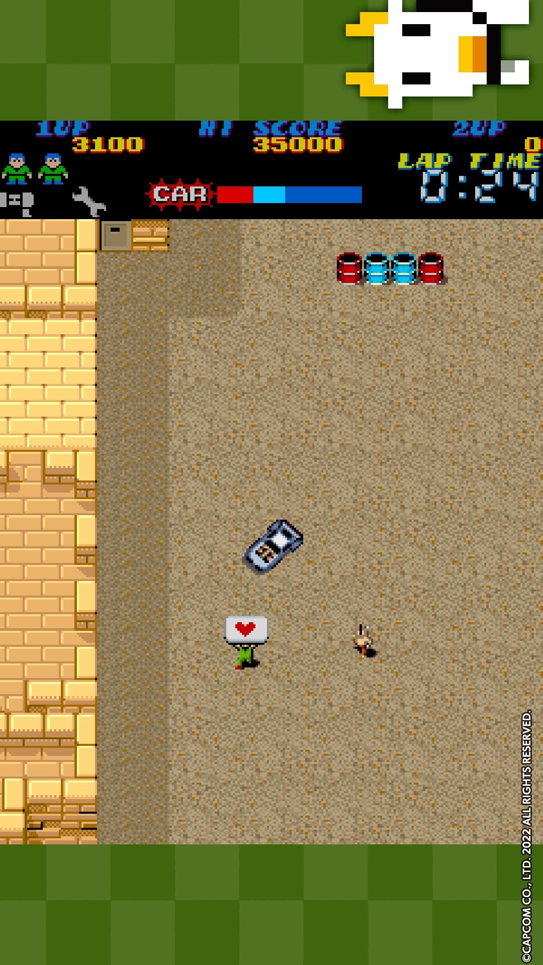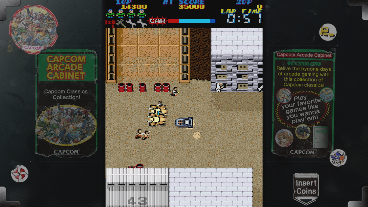 Developed internally at Capcom but using MAME emulation as a base, this isn't quite as good as M2 and Gotch Technology's efforts but the focus is a little different, as the Stadium reissues are about volume, preserving the most amount of games as possible that they can reasonably license (hence some games getting title changes- you think Capcom's able to release a game called Avengers, in this economy?). It does, however, take a similar 'buy the games you want' deal with £1.69 for each individual game, although the full pack, usually at £32.99, is often on sale so you might want to wait it out. The Speed Rumbler is in the second set and loses the Casual Mode and gallery from Cabinet but keeps most of the dip-switches, online leaderboards and region selection and also gains a few new features- save states, rewinding, five different speed levels in case you want the game to be faster or slower and being able to flip the screen orientation (perfect for using with a Flip Grip on Switch) as you can see above. One tiny part of the game has been edited though- the First-Aid Kit now uses a heart instead of the red cross as the International Red Cross really doesn't like their symbol being used for entertainment. Generally this is a perfectly fine version of the game, although I think the Cabinet version is better.