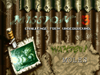 Anyway, we'd better get back to the matter at hand- moles! Mutant moles! Or, as they're known in this world, Moguralians. They're pretty unique enemies as far as scrolling brawlers go- they actually explode in one hit. As long as it's a clean hit, that is- if you wake-up attack them, they'll just get knocked back, so always go for real hits. Most of this mission is just dealing with these guys and they come in three forms, one after the other- the standard ones that explode out of the ground (the explosion can hurt you, so watch out) and move around erratically either trying to punch or roll into you, the ones that just pop out the ground to lay a timed mine (they're not proximity mines, fortunately, just stay away from them when they start beeping) and the white-furred ones that walk very, very slowly, usually in a line, so you can find the right place to stand and just punch them into oblivion. After you face each of these types the first time, there's a little interlude with some Brads and Doobys (and a concrete pole) but then we get back to the Moguralians who mix things up a bit. Pretty straightforward stage, otherwise.
