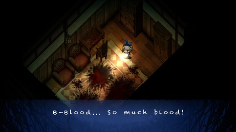 The other big issue is the story and tone. In many ways, it's like Midnight Shadows feels the need to prove itself to its audience, and push things further than its predecessor in terms of gore and shocks. To this end, there's a lot more jumpscares, including musical stings and images flashing on-screen with no warning. Night Alone did have its own jumpscares, yes, but it never quite relied on them to this extent, nor did it have the sheer amount of blood this one has (even the game knows- at one point Haru actually says "B-Blood... So much blood!"). Not that this is inherently bad, it's just in this kind of game, buckets of blood are never quite as effective as a more subtle approach that the predecessor did so well. Beyond that though, the story tries to go in much, much harder and fumbles. On the one hand, the intro is an effective double-bluff, making you think the dog's going to die just like the first game, but instead your character hangs themselves, setting the game up for being a much harsher, crueller affair. On the other, I don't think it works nearly as effectively. Ribbon-chan from the first game had a much more grounded story, that of a child learning about mortality through her pet, and while the case can be made here of Haru learning the same lesson in another form, it's handled much worse here, with the story being told in a weird, jumbled way, and it almost feels like it's trying too hard to 'one-up' the previous game. Night Alone had its own story foibles, but it mostly told its story fairly straight-laced and in a way that struck a chord with minimal dialogue. Midnight Shadows throws too much at you in a way, most annoyingly some confusing flashbacks near the end that don't really seem to connect to anything, and while the ending ties up at least a few of the loose ends, the story going in too hard and fast does diminish its possible impact.