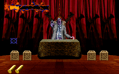 Once his health is down, he'll retreat to the background for good, and start using two more attacks, which are pretty much the same thing. First, he'll fire four fireballs, one to each corner of the screen. If you're on your own, then it's difficult to shoot all four of them before they hit you, but you stand a chance if you're playing with a friend. When he's in his death-throes, he'll launch out four thunder attacks in exactly the same manner. Because they're a tiny bit slower, they're slightly easier to deal with... But only slightly.