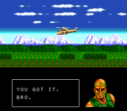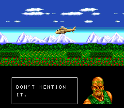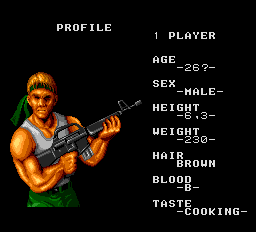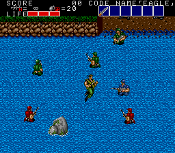 However, the main thing is that charm. It's a bit like the arcade Splatterhouse, in a strange way- like that game, the game mechanics are good enough, but both have an extra something that make it really worth playing. Splatterhouse had its down-beat horror stylings, but Bloody Wolf has goofy charm. While this is present in the arcade release, it's really emphasised in this home port. It's the little things- the way enemy soldiers clutch their gut and make a half-hearted attempt to replicate the Platoon poster when they die, the statue soldiers who are literally grey-scale dudes that are tough as nails, the second half of the game constantly one-upping itself on how over-the-top it all gets, the KNIFE KILLER, Shotgun Man exploding for no reason, the raft ride, the fact that there's seriously an item in this game called Muscle Emphasis Tablets... If you're looking over that list of silly things in this game and nodding your head in silent approval, then you know what I mean, right? At the same time, it's not this charm that makes it the only reason to play it- as I said, the game's got a solid foundation. This is the opposite of, say, Avengers, because that game has goofy little details but the game itself isn't much fun to play. Bloody Wolf is, though- the weapons are satisfying, the bosses are inventive at times (even if they can be frustrating when you've died a lot) and so it's a case of the little details adding to an already good game to make it better.