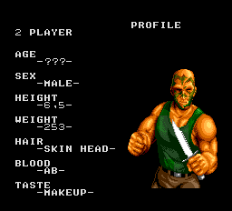 In the attract mode of the Japanese version only, we get some stat screens for our two heroes, as seen above.
