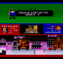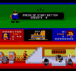 Now, let's see the Mega Drive version, which renames the stage from the Bank to the Company. Hmm!