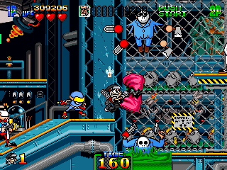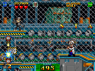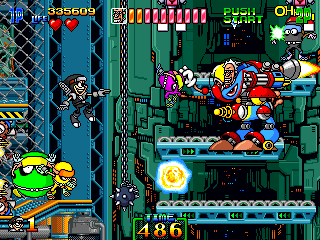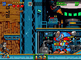 Not content with running away once, Mac makes you chase him like a bitch again and by this point, you just want the fight to be over. After slooooowly scrolling through the slog that is the last segment of this stage, Mac just sort-of floats there, occasionally using his machine gun, while packs of enemies try and catch you out. Fortunately, his arm isn't working here, so you can just abuse the short-range attack and take this guy out really quickly. I know I'm ragging on this part of the game a little, but it really ruins the sense of fluidity the game's had up to this point.