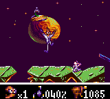 Since the Master System game is a a port of a port, we'd better look at what spawned it first- the Game Gear version. Released in 1995 and coded by Eurocom, who were also behind the Game Boy port, the Game Gear Earthworm Jim is, well, shit. It looks decent enough, mind you, as while it's nowhere near as good as the original, it does its best to keep the fluid animation of Jim himself in-tact. The game itself brings everything down- it's dogged by slowdown here and there, and the 'tap to whip, hold to fire' control scheme is very finicky, so forget saving your Plasma shots for tough enemies; the controls will make sure you waste them. This is probably the most frustrating part of the game, because if they'd implemented it correctly, this two button system could've worked, but as it is, you'll never perform the action you want to, and so you'll end up being hurt while desperately trying to attack. Furthermore, the levels themselves (the ones that are still here- goodbye, Level 5 and Intestinal Distress) have been altered for the worse. What the Heck?, for instance, keeps the section where spikes fall on your head, but unlike the original, they're not ordered in nice rows- they're random and they don't stop until you reach a certain point, which means you're going to die here whether you like it or not.