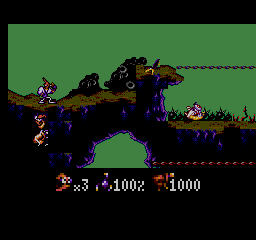As well as cutting all these levels out, the port adds in a few new quirks, mostly related to the screen size. Now, some of these are beneficial, as in the case of the underwater pod section in Down the Tubes (it's now much easier because you can actually see where you're going.) but others seem to be more like glitches. For example, you can now hide on the left side of the screen during the New Junk City boss and take no damage at all, the famous cow-launching part can actually be skipped because the screen doesn't stop scrolling (but the wheel things on the wires won't appear until you launch the cow) and generally you're able to see stuff that the developers clearly didn't intend for you to see (one of the nice touches of the Mega Drive/SNES game is that you'll be taunted with items you can just about see, but can't reach- the Master System game usually lets you see too much so the solution to getting the item is blatantly obvious). Furthermore, the slowdown of the GG port is made much, much worse here- it may be shorter, but it's just as painful to play.