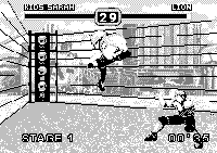 Inexplicably, of the 20 or so games made for Tiger Electronics' doomed portable (including but not limited to Mortal Kombat Trilogy, Lights Out and Resident Evil 2 seriously are you having a laugh), two of them- Sonic Jam and the focus of our attention now, Fighters Megamix- were Sega properties. Don't ask me how this happened (and don't ask how Virtua Fighter, Virtua Cop and Daytona USA showed up on Tiger's excreble R-Zone system) but it did, and we're going to have to deal with it. Fighters Megamix for the Game.Com is a truncated version of the Saturn game. Heavily truncated. It's down to 4 Virtua Fighters (Akira, Pai, Lion and Jacky), 4 Fighting Vipers (Bahn, Honey, Sanman and Mahler, now with armour that disappears all at once after a certain number of hits), 4 four secret characters (Kids Sarah, Janet, Hornet and Siba), all with er, about 7 moves each- ground, aerial and crouching punches and kicks, and if they're lucky, a special move (in Janet's case, her gun, so once you unlock her the game's over).