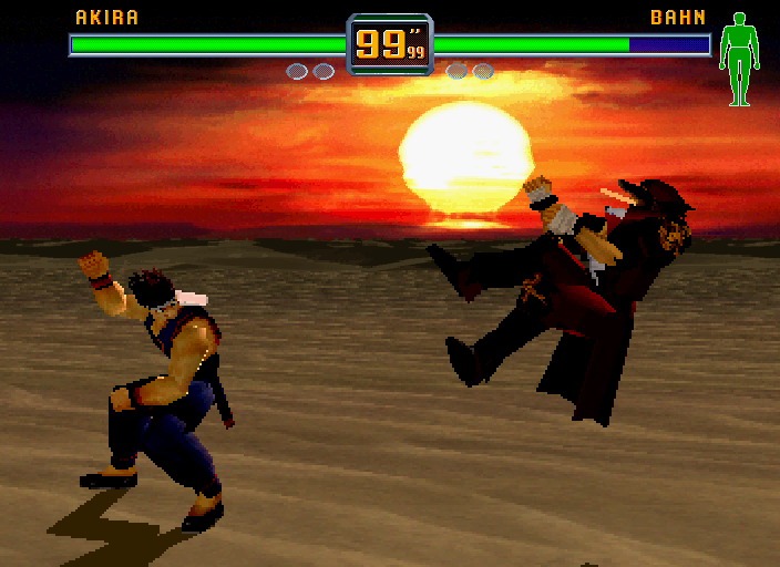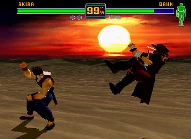 Since there was no arcade version, the structure of this one is a little different. The 1-player mode is split into 7 different courses with 7 characters each (each one ending with a secret character), arranged in themes. You start with Novice Trial, Virtua Fighters, Fighting Vipers and Girls; beating them unlocks Muscle, Smart Guys and Dirty Fighters; clearing them gets you Bosses; beat that and you get Secrets. Most people say that the game lacks replay value for the solo gamer because the entire set of courses can be beaten in little under an hour, but this actually works in its favour. The A.I. is slightly different in some courses (most obvious in Dirty Fighters) and eventually you'll fight every character, so by playing through each course as the same character, you'll learn how to beat different kinds of fighters with them. It's almost like a crash-course in not sucking at AM2 fighters, and your best time for each course is recorded, so you can refine your skills to get the best time. There's also the standard extra modes like survival, team battle, and the training mode from Fighting Vipers making a return, so there's plenty to keep you occupied. Of course, the main draw is fighting with a human opponent...
