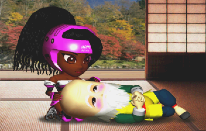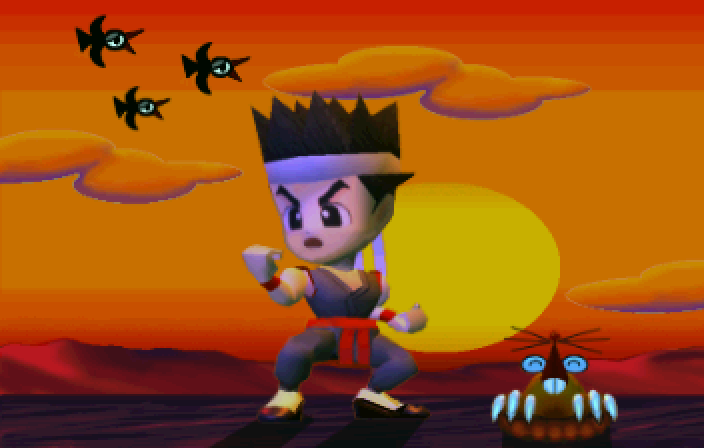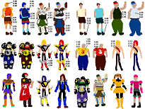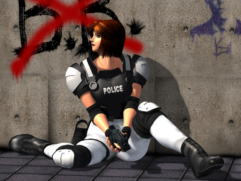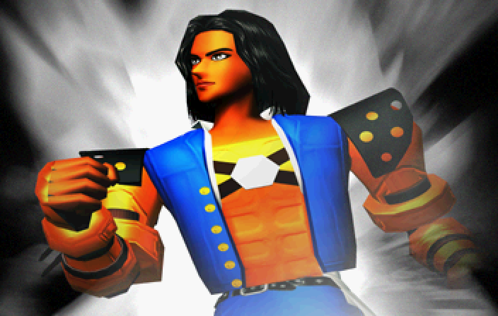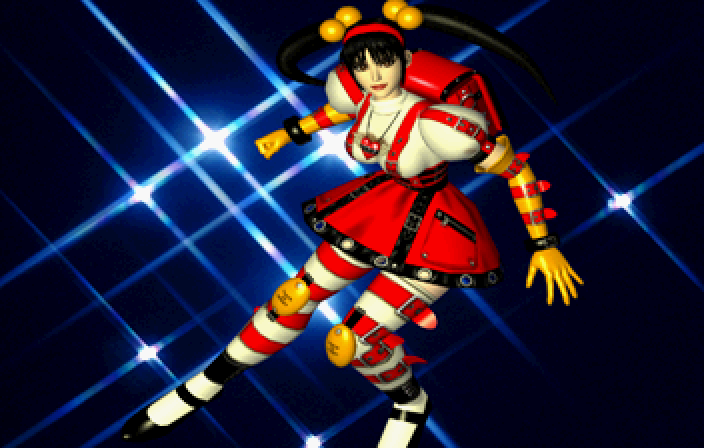 Just as Fighting Vipers had a Portrait Gallery, so too does Fighters Megamix, but it's a little different. Beat any course to unlock the Extra Options, and with it, the Portrait Gallery, with 3 images from the course you beat. Every course has 3 images, but for the American release, some of the pictures were considered a bit too racy (most infamously the 'Taste of Honey' art, but also Tokio without his shirt and Dural showing a bit of nipple) and so they were replaced, as well as the song credits being taken off the Rent-a-Hero image. Since I'm thorough, I've included these as well- they're the last image in their respective courses. There's also two additional pictures of Janet which can't be viewed from the Portrait Gallery- you have to play the Match Game to see them at all, which is explained on this page. Finally, the Japanese version has an 'omake' (bonus) folder hidden on the disk, with 13 wallpapers for you to use (including 'Taste of Honey' if you're brave) and they've been included here too. So, once again, here's another taste of the horrors of late 90s CG art; the entire Portrait Gallery of Fighters Megamix. Click the little pictures to embiggen, and enjoy, I guess.