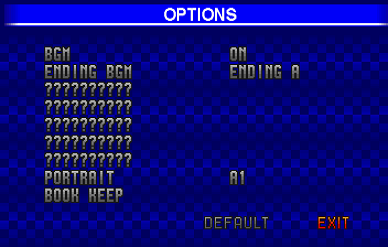 Hidden in the normal Options menu, Extra Options are, as the name implies, extra options that you can unlock. The first time you unlock it, you'll find the following options unlocked: BGM (switch the music on/off- switching it off also removes the rare bit of slowdown you'll encounter in-game), Ending BGM (listen to the ending music for each course once you beat them), Portrait (explained here) and Book Keep (you can look at records such as Training Mode OK count, hours played, all-clear characters, etc.). Five of the options are locked away initially, and just like Fighting Vipers, the requirements aren't very well-documented on the rest of the internet. Allow Gaming Hell to illuminate your path. In the order they appear on the Extra Options menu, here they are: