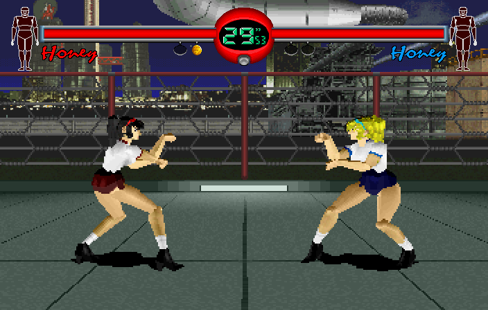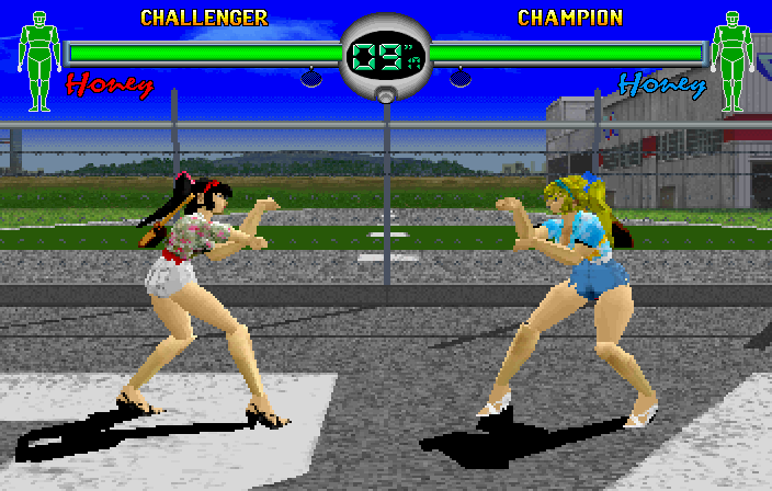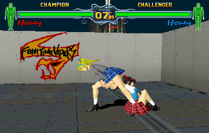 Again, Schoolgirl Honey gets a separate space on the Character Select screen, and she can't be used in Arcade Mode either. Even though she gains no additional moves like Hawaii Honey, you still can't see her moves list in Training Mode. As such, Schoolgirl Honey is possibly the most pointless character in the game, probably only included to adhere to the strict regulations regarding fighting games in Japan, i.e. there must be at least one character wearing a schoolgirl costume at some point.