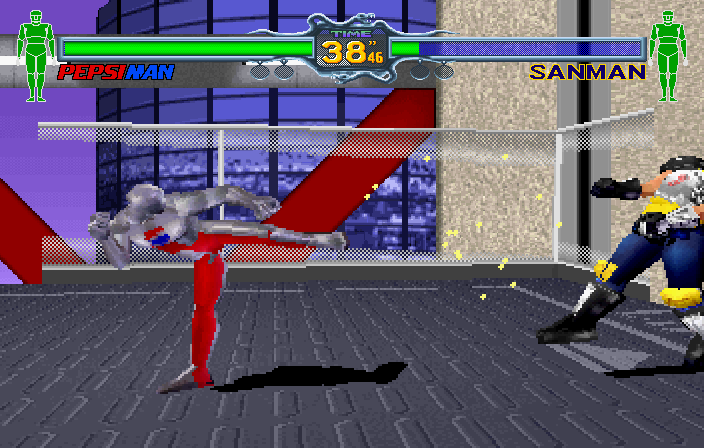 Unlocking Pepsiman also opens up the final secret option in Options Plus, Pepsiman Reset- this will disable Pepsiman, and he'll be around to challenge you again. You can use this to your advantage- if there's a character you really don't want to fight in Arcade Mode, reset Pepsiman and you can replace them with him. I don't think I need to explain why he's the best character in the game, so I won't, but his appearance in the game completely justifies importing the Japanese version, regardless of the other extras.