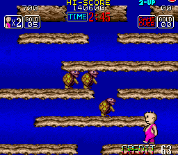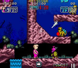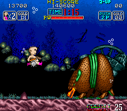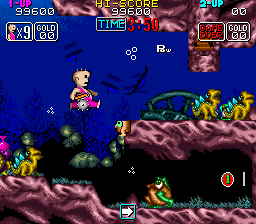 3 Stage is underwater, but that doesn't make any difference to how the game is played, you can bet your ass it's just as slow and repetitive as normal. But no, you see, everything gives off bubbles, that MUST mean we're under the ocean! Let's just ignore all the other technicalities for the moment, we're under the seeeeea, under the seeeeea! Eh, whatever. However, 3 Stage isn't without its charm, as it's the only stage in the game where the boss isn't repeated on a later stage. And you thought the programmers wouldn't stoop to such a level. Oh, how you thought wrong.