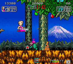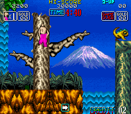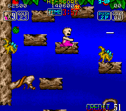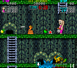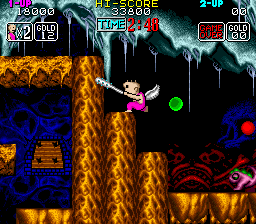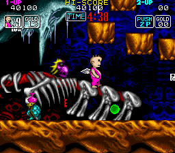 So, this is 2 Stage. It's a cave. And, I'll be frank with you, from here on out the game is drudgery city. Every single stage is basically the same thing- the game will slowly scroll through each level, the graphics look different but everything is the same on a fundamental level (i.e. it is not fun in any way, shape or form) and it just drags on forever. I mean, think about it- in those old 90's instruction manuals for platform games like this, they'd describe the different stages in a hyperbolic way, but at least they're right in the sense that something different happens on each different stage, or world, or whatever. Like Sonic, for example- Green Hill is different to Star Light, right? And it's not just because the graphics are different, right? It's because they used different elements unique to each stage. Hell, even though the majority of the stages in the original Super Mario Bros. look the same, at least there's different level types, like the underwater, underground, and castle stages. Even the overworld stages had differences between them, some having gimmicks like springboards, Lakitus, flying Cheep-Cheeps... This is fundamental to fun platform games. Oh, and Sonic and SMB don't play like ass either.