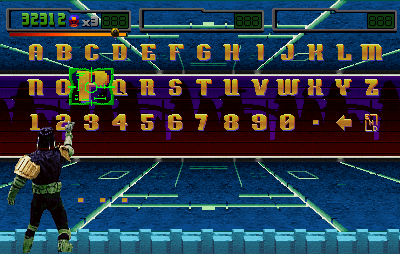 As a nice touch, you get to shoot the letters for your name, Dredd-style. So let's give it up for HIGH SCORE TABLE TIME!!!