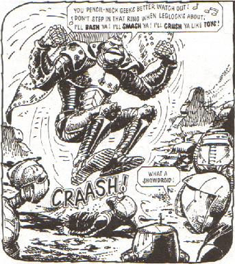 Precious Leglock is a robot wrestler who decided to wrestle with the law, and make his own city, challenging anyone who entered to a wrestling match. Another one that seems to be pretty close to the comics, although Leglock's face in-game is, well, pretty unflattering. You'll also note that Leglock's taunts of "Better watch out!" and "I'll bash ya! I'll smash ya! I'll crush ya like toys!" are taken directly from the comic.