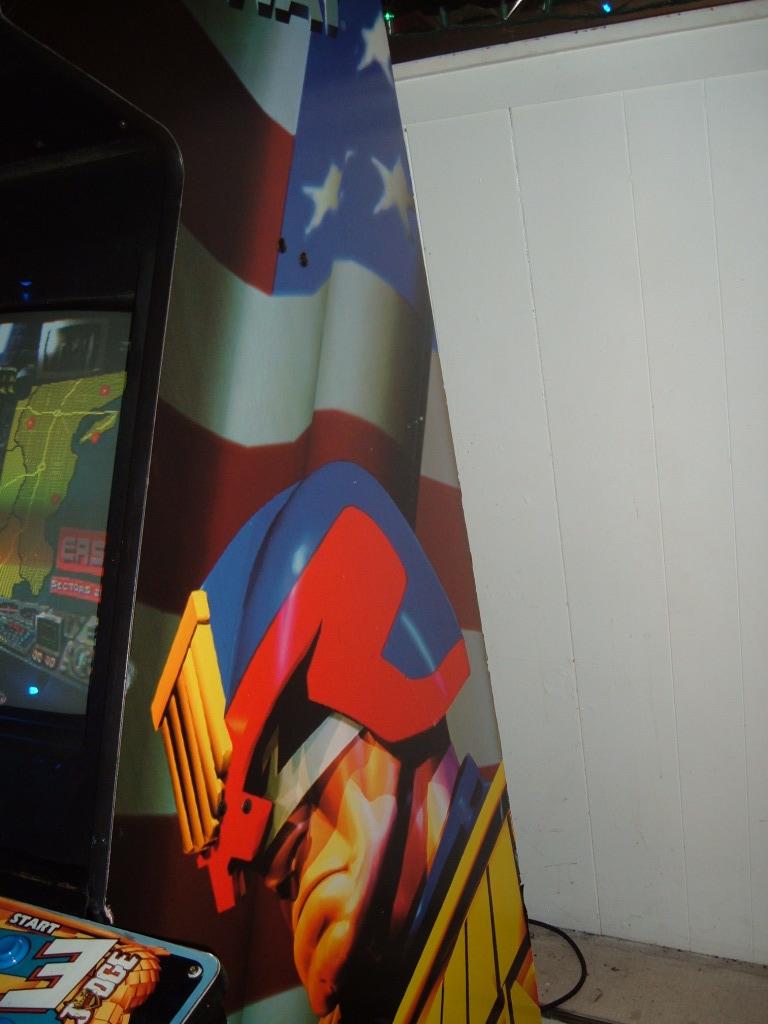 [Here are some photos of a Judge Dredd cabinet, taken by Schusler of arcade-museum.com.]