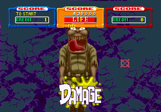 Next, the hanging corpses seen throughout Chapter 6 appear from Mission 5 onwards in the arcade game- here they try to lick you.