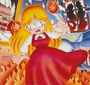Finally, a blonde girl in a pink dress that looks a bit like Catherine is kidnapped at the beginning of the arcade game, and is shown at the end of every mission. Sure, the resemblance is essentially 'they've both got blonde hair' but I'll take what I can get. Upon reaching the end of Mission 6, you find the girl... As she hulks out (in a form that vaguely resembles Crazy Fat Ethel) and tries to kill you with a hatchet. Then she mutates again into something that cannot be unseen (sorry for scarring you, everyone). The game ends with the girl turning back to normal and returning home. Whether this is actually supposed to be Catherine or it's just a coincidence is something that we'll never know or care about.