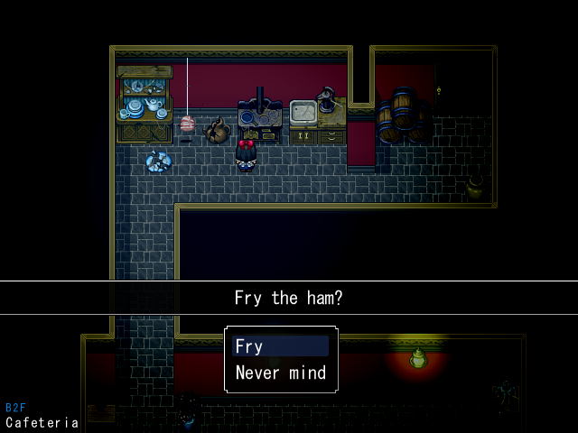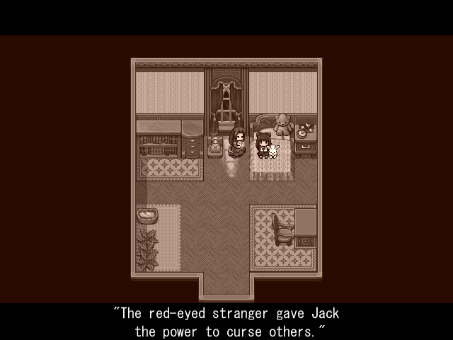 The original game, as released for free by Miscreant's Room, is mostly the same as the remake. The most obvious difference is in the visuals, as the game was given a fresh lick of paint, mostly the environments getting new tiles and details. One change that may be a bone of contention is that the original game is a lot darker- you don't get much light around Aya, and some areas like the storeroom are in almost total darkness. On the one hand, this does make the whole thing feel like it's taking place at night more clearly, but it has the side effect of sometimes making it hard to know where you're going, and overall makes it feel a little too much like The Witch's House, which had similar low visibility. Personally, I prefer the 2016 version's visuals- not just in terms of lighting, there's a lot more detail everywhere- but it might be a case of personal taste. It would appear that even earlier versions of the game, as seen on vgperson's page, had yet more graphical differences- the portrait art for Aya is very different there!
