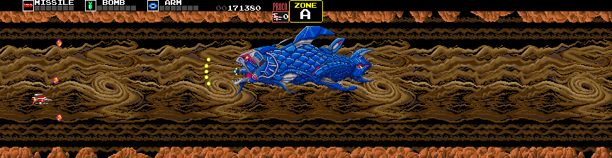 Whoops, whoa, hold up a second. That's clearly a reject from Taito's Darius series, and he should be introduced as such.