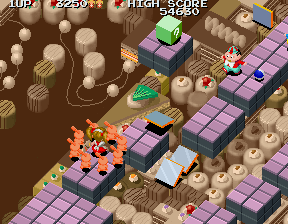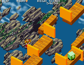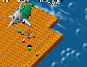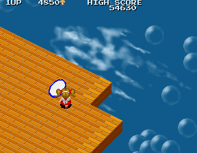 In addition to the horrible Flat Fish, there's also the seemingly harmless Dragonflies. You're pretty lucky to even get a screenshot of these guys, because they move in massive circles blazingly fast, and if they catch you, they'll drag you off the stage. Because of the isometric perspective, it's really hard to tell when they're going to hit you. You rarely see it coming, you'll be totally blindsided, and you'll fall to your death. Again.
