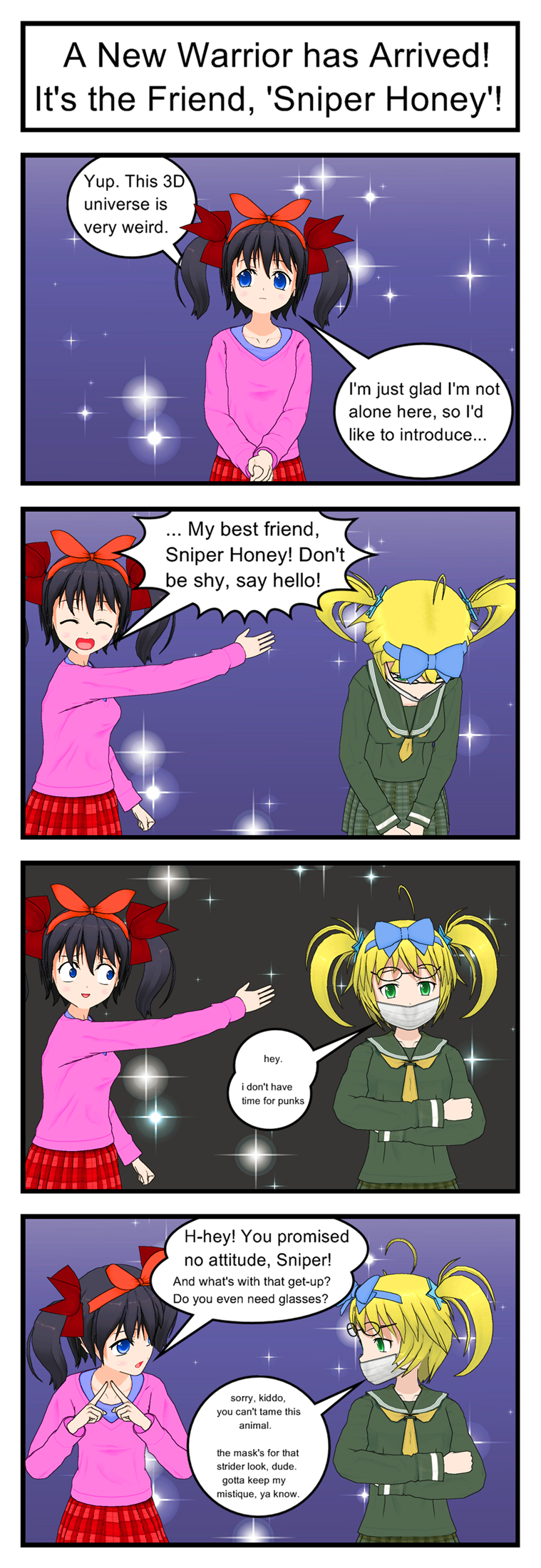 [Oh, here's the next one. This is going in a weird direction, who's Sniper Honey?]