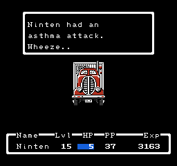 OK, I've talked far too much today about a single game and there's still some bits I've probably forgotten, but my editor is currently screaming "ARE YOU DONE YET" at me from off-screen so let's try and finish things up here. For someone who only plays proper full-blooded JRPGs once in a blue moon- and something so heavily inspired by Dragon Quest can be nothing but a full-blooded JRPG- I really enjoy Earthbound Beginnings and would love other people to do the same. Its frankly unfair reputation of being grindy, coupled with its more famous sequel, gives me the sense that most people aren't willing to give it a proper chance, but it has a lot of things that make it distinct from its follow-up- its open-ended nature with a focus on exploring a huge world, having a 'home base' of sorts in Magicant that's easily accessible once you visit it for the first time, the simple but challenging nature of enemies and encouraging the player to not be afraid of running away now and then. The qualities it shares with its bigger brother- the contemporary setting with dashes of sci-fi, the oddball sense of humour and the general vibe of the presentation- make it stand out amongst the other games in the genre on the system though. There would be life in the Famicom for a couple more years after the game's release, and arguably more robust, advanced JRPGs would follow it- Final Fantasy III would release the following year, and Data East's even more open-world Metal Max the year after that- but in spite of its weaknesses and faults, Earthbound Beginnings is a pretty solid recommendation if you're willing to approach it as intended. Keep a positive attitude, remain ever-curious, feel free to falter a little here and there but don't give up, just lose yourself a little in the adventure, y'know? And maybe you, too, can save the world with just a baseball bat and the power inside you.