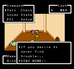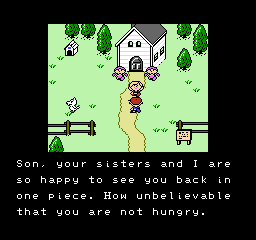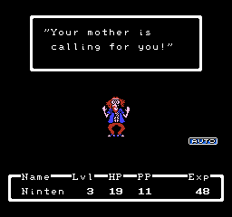 That, apparently, is enough for Ninten's dad (on the phone, always on the phone) to tell him to go on a grand adventure to discover his PSI powers!