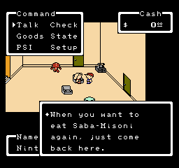 The last major game mechanic element I want to talk about is item and money management, as it works a bit different from how you'd expect. The big one, and one that drastically affects the game's pacing compared to other contemporaries, is how money works. Similar to Dragon Quest, upon death you keep your progress and just go back to the location you last saved in minus half your cash, but money earned in battles is recontextualised as Ninten's dad giving him an allowance straight into his bank account (based on what enemies you defeat), so you only lose the cash you have on-hand, not anything that's been built up in your account. So, early in the game when money is tight, taking a death isn't nearly as demoralising as it could be, and this slowly becomes less of a problem as you learn new PSI abilities and eventually get very powerful healing items just handed to you for the climb up Mt. Itoi (possibly a plaster over the issue of the difficulty of that area, but it's welcome). There's a couple of other tricks you can do with this money system too, mostly never carrying too much cash with you when exploring, selling items like Ropes for huge cash bonuses and defrauding certain hospitals that take half your available cash by depositing all your money before visiting (that's a bit on-the-nose, huh). Eventually money becomes a little meaningless (especially since you can find a Phone Card for saving your game) but I do like that early on it's not as big an issue as it could be in other games in the genre, and it helps give you a bit of a leg-up to get started.