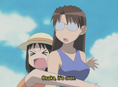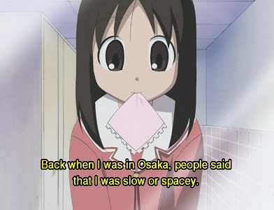 Ahem. So, as long-time readers will know we're not good at keeping up with The Animes (or The Mangas), but we have very specific taste. Cyber City Oedo 808? Hell yeah. Fist of the North Star? Sign me up. And I'm like halfway through the original Sukeban Deka manga. We also, however, have a soft spot for silly stuff, as evidenced by our shrine to all the game references in The Squid Girl and bestowing the title of Saviour of Anime to Hi☆sCoool! SeHa Girls. So, one we wanted to watch for yonks but never got around to was Azumanga Daioh, an adaptation of a 4-koma series which is basically 'high school girl hijinx' but we're OK with that silly kind of thing. We finally, as in in 2015, watched the whole show after finding the Class Album boxset (which IIRC was never released in the UK, this is a US import) in a games shop (?) in Llandudno (???). We liked it. The show-stealer is, of course, Osaka, the transfer student from Osaka (hence the name) who is, well, Osaka. Hopefully these clips demonstrate that her power level is off the chart for normal humans, so we like her.